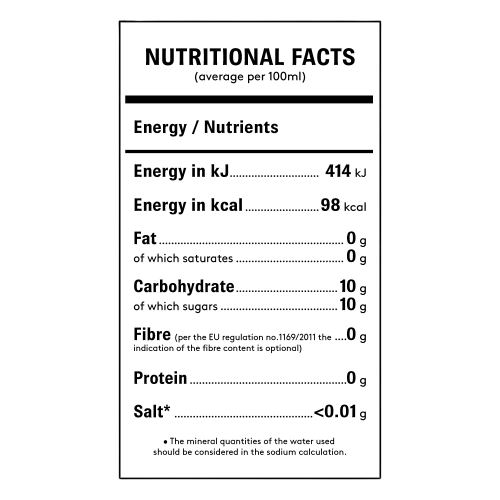 *Percent Daily Values (DV) are based on a 2,000-calorie diet. **Daily Value (DV) not established. Suitable for vegans. No artificial colours, preservatives, or yeast. Gluten-Free. Liberation Cocktails are not tested on animals.