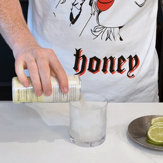 Pour into a rocks glass filled with ice and squeeze the can to release the foam.